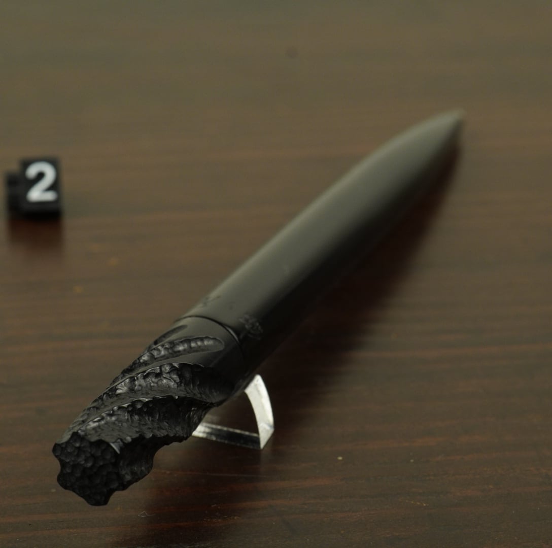エボナイトで作られたプッくらとしたボディは素材のおかげで、ホールド感が良い。エンド部分を廻すとリフィルがでる。ペン芯ギリギリまで追い込んだ先端はブレがなく書きやすい。そのため精度の高いG2規格のリフィルだけを受け入れる。推奨リフィルは三菱のジェットストリームSXR-600-××