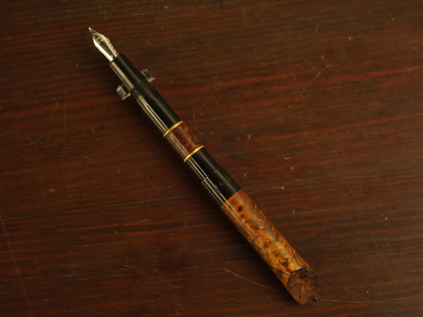 キャップ末端にブライヤーの表皮側を用いることにより自然の面白さと多様性、根瘤の杢目の複雑さと力強さを感じます。